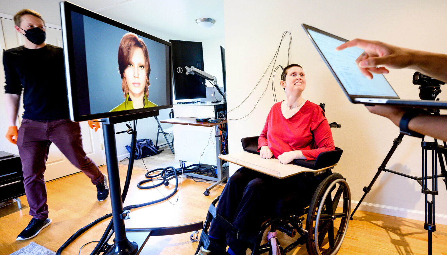 加拿大萨斯喀彻温省的高中教师兼教练安·约翰逊(Ann Johnson)在 2005 年因脑干中风导致近乎彻底瘫痪,尔后一向饱尝闭锁综合征的摧残。这种稀有病症使患者认识清醒,却无法言语或举动。18 年来,约翰逊依托眼动追寻体系以每分钟 14 个词的速度与外界沟通,远低于正常人每分钟约 160 个词的对话速度。但是,现在她总算再次听到了自己的声响,这得益于一种脑机接口(BCI)技能,